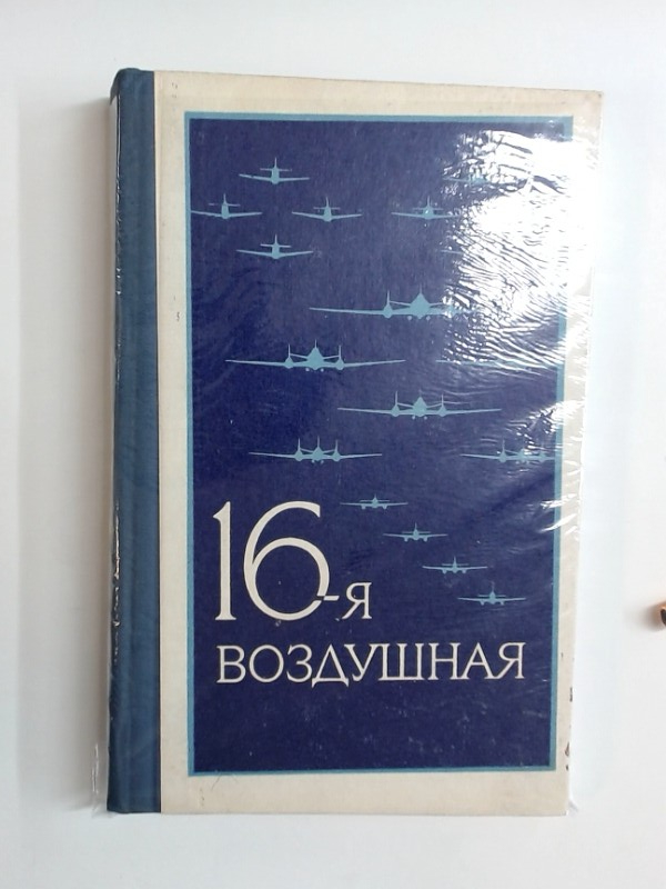 Description: 390p hardback, blue cover with aeroplane design, cloth spine, illustrations, maps, portraits, without name or stamps, binding defect as cover is cleanly separating from case, first edition: 16th Aerial. Military Historical Essay on the Combat Route of the 16th Air Army