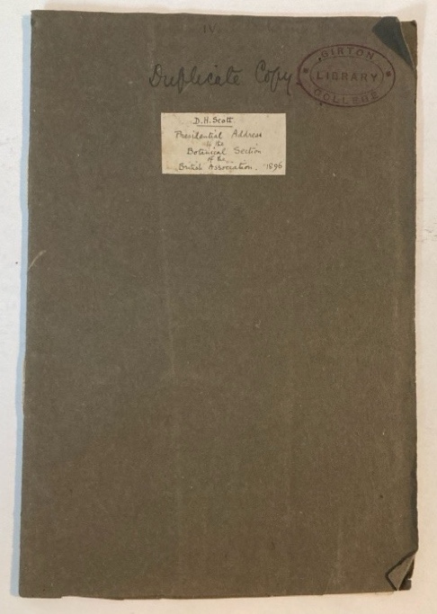 Description: 20p threadbound booklet in earth-brown card covers, light wear to edges, handwritten title label to front cover, faint stamp and words 'duplicate copy' from a Cambridge college, pages a little foxed but otherwise clean and bright like new, very good copy