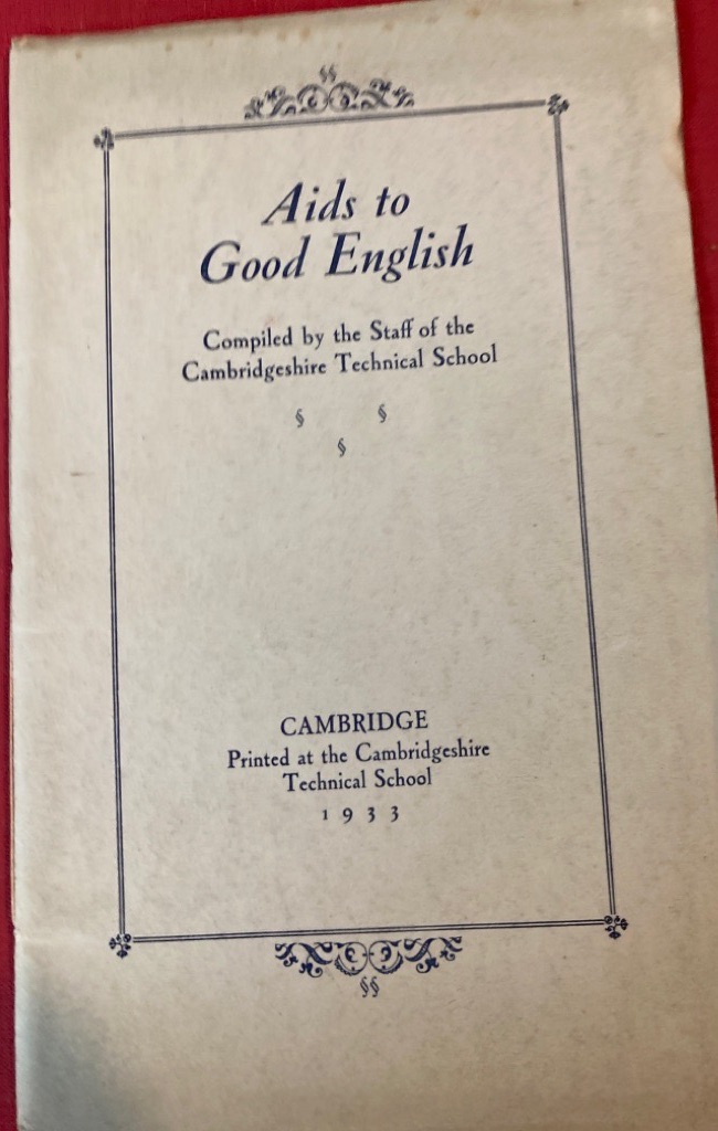 Description: 18p nicely produced slim grey card booklet printed in blue, sewn binding, text very fresh and clean, introduction promises that 'you will make fewer of those glaring errors which stamp one as uneducated', uncommon item