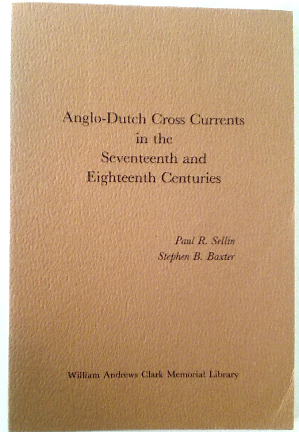Anglo-Dutch Cross Currents in the Seventeenth and Eighteenth Centuries: Papers Read at a Clark Library Seminar, May 10, 1975.