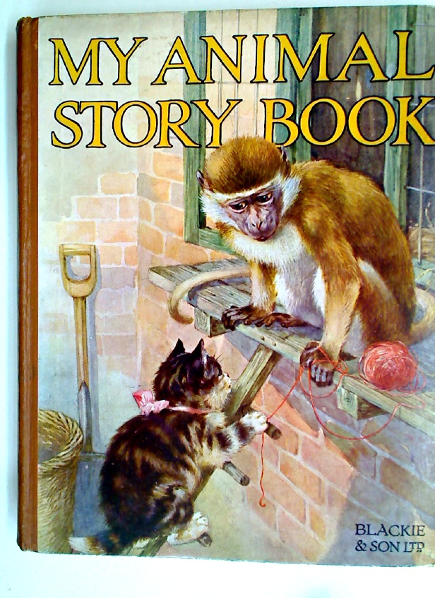 Description: large format hardback, colour design with monkey and cat to front cover, brown cloth spine excellent tight and fresh with black lettering, corners a little dented, title page detached with inscription dated 1922, many black and white illustrations and colour plates, without traces of a child's fingers, feet or other parts anywhere