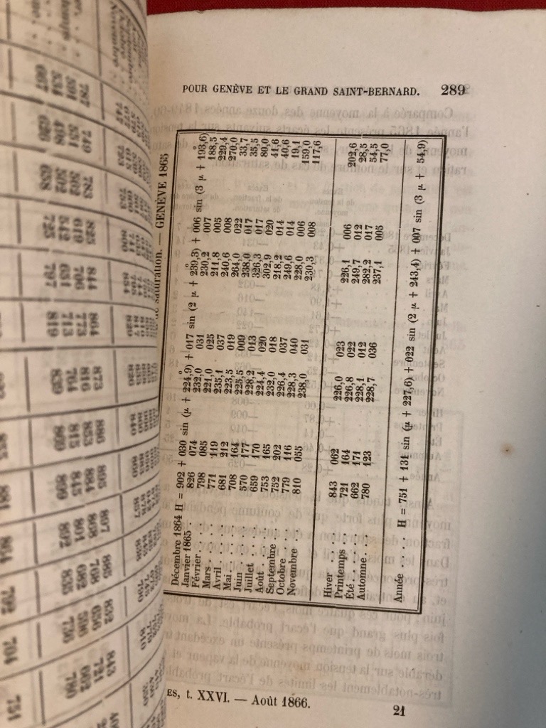 Description: 358p blue paper cover with faded hand written title to spine, roughcut edges, tables, various contributors, very good: Observations météorologiques; Retrait et ablation des glaciers de Chamonix, etc French language, original science journal