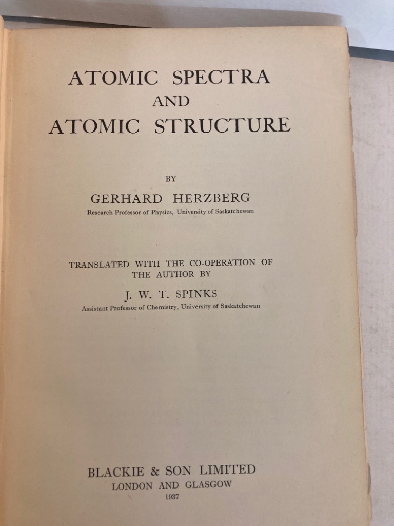 Description: xi 257p original dark cloth, a rather worn and aged copy from a Cambridge college library with the following particulars: original endpapers destroyed due to removal adhesive stickers, page xiii (list of illustrations) detached, no stamp to title page, stamps and adhesive to half-title, original cloth spine present (worn and with small tear), but for the rest, this copy is still a very respectable exemplar, such that the bookblock is tight and there are only light traces of use, no annotations have been spotted, Herzberg is a Nobel laureate