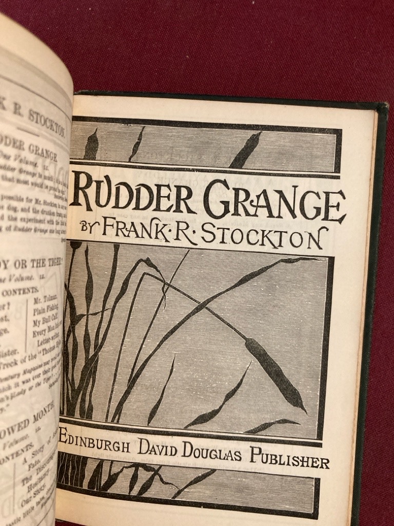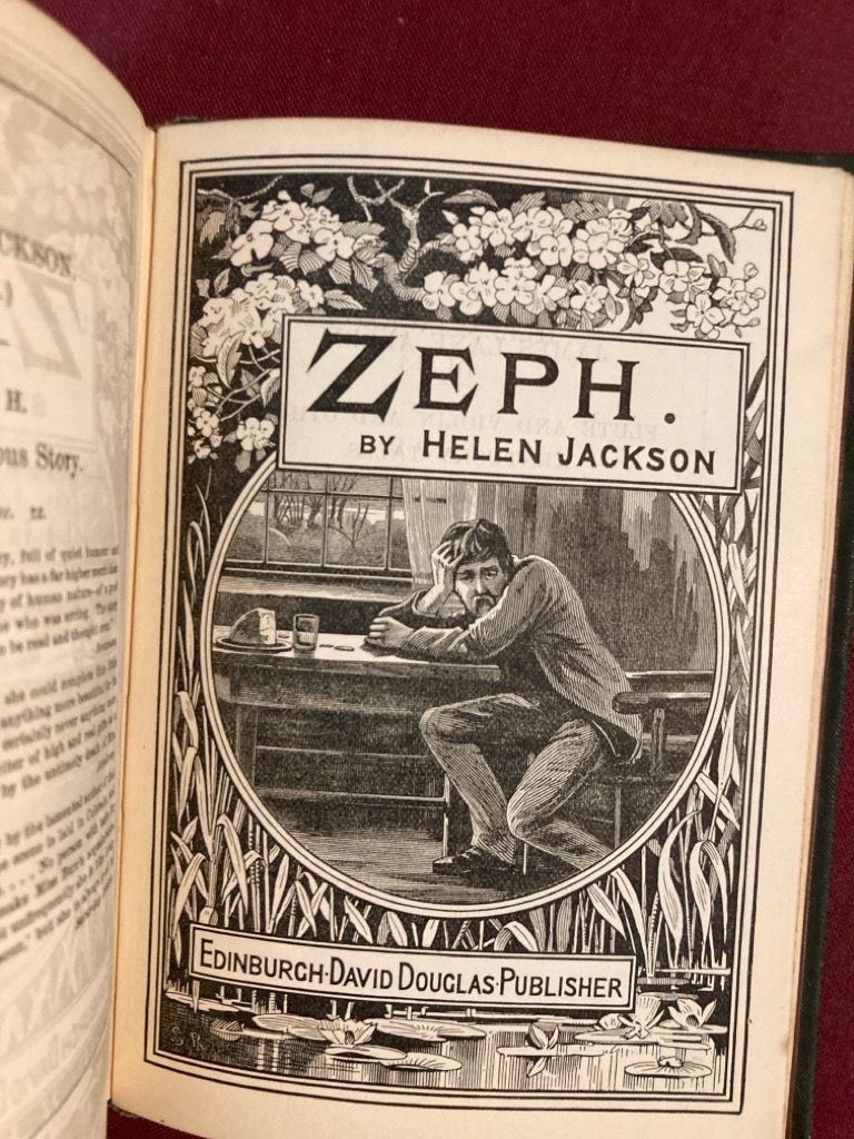 Description: 336p small green cloth with lavish floral decoration and gilt title, binding stretching in places, top edge gilt, pages clean, very decorative publisher's advertisement ("American Authors") to rear, including a series of illustrated title pages, very good