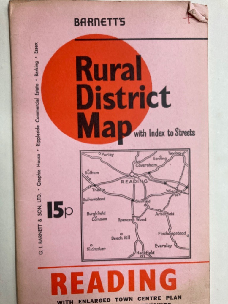 Description: Foldout street map with pink card cover, double sided map with street index, adverts and area map, very good