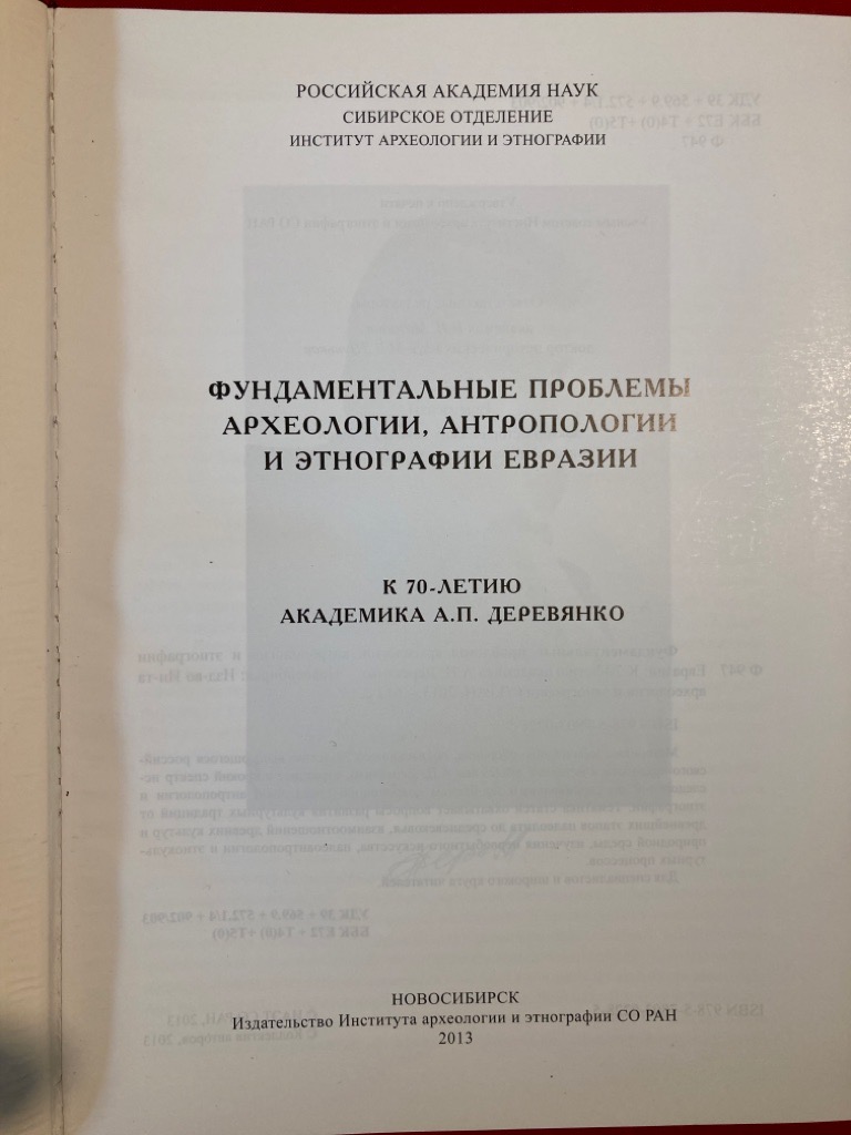 Publisher: Novosibirsk: Institute of Archaeology and Ethnography Press 2013.