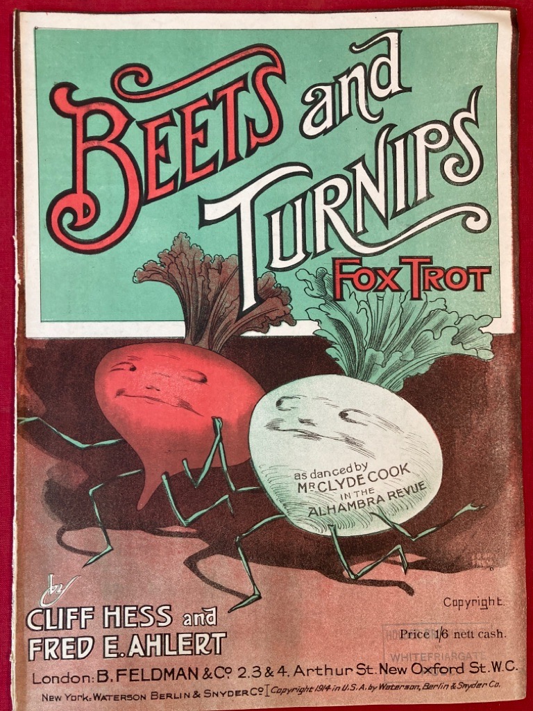 Description: 6p large format, removed from binding, fresh copy with attractive root vegetable dance design to cover, beets - beats: pun intended