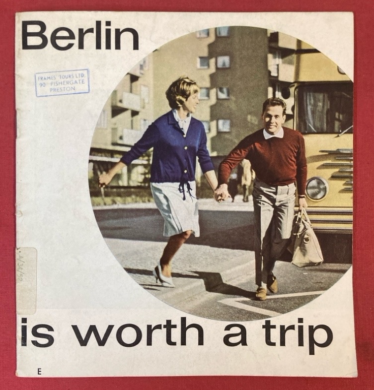 Description: 32p colour illustrated, text in English, title translated from "Berlin ist eine Reise Wert", cover shows two pedestrians trying to escape an approaching bus, authentic