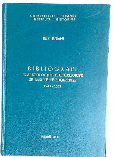 Description: 221p hardback with petrol cloth with gilt lettering, clean firm copy, title translates as "Bibliography of archaeology and ancient history of Albania", in Albanian, also some French