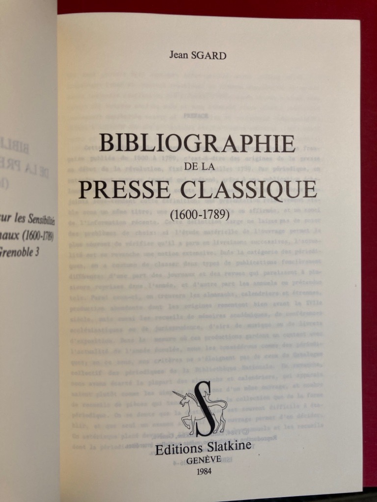 Bibliographie de la Presse Classique, 1600 - 1789.