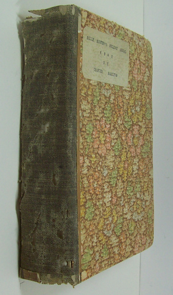 Description: 231p hardcover, amateur rebinding, boards covered in what looks like vintage wallpaper, cloth spine present but fragile and full of holes (backed with paper), endpapers and title pages missing, text good but for tanning and foxing to pages, scarce title, good reading copy, poor poor poor