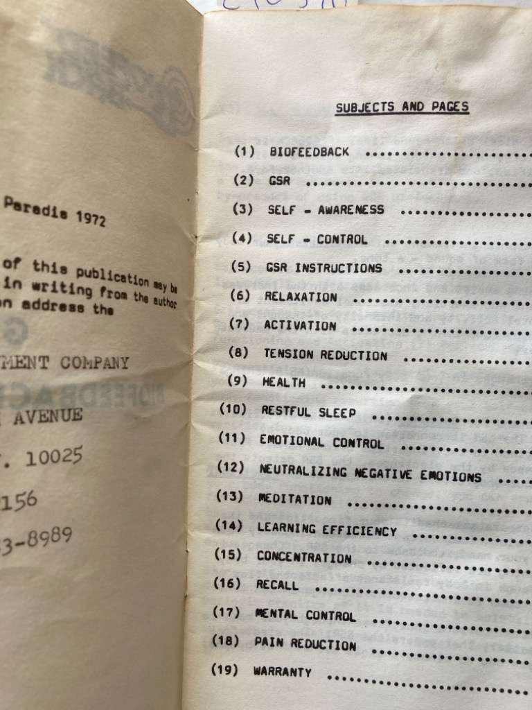 Publisher: New York: Biofeedback Instrument Co 1972.