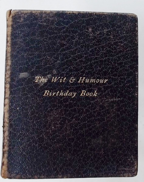 Description: small format, full calf, all edges gilt, to front: The Wit and Humour Birthday Book, on spine "Wit and Humour", entries for every day with saying to the left, and space for birthday entries to the right. This volume has been well used and lists many birthdays in ink, but also many dates and details about deaths