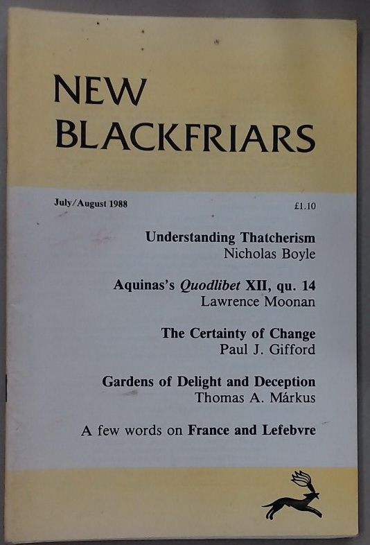 Description: approx 52p stapled booklet, yellow card cover, very good: Nicholas Boyle: Understanding Thatcherism; Moonan: Aquinas; Paul Gifford: Change; Markus: Gardens of Delight