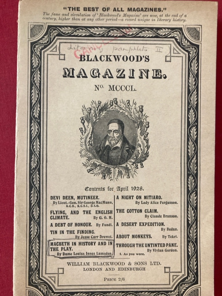 Publisher: London: Blackwood 1928.