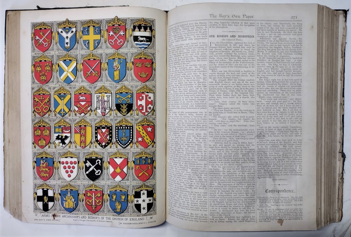 Description: 832p large-format hardback, black spine and blue cloth cover but with front cloth missing, general wear commensurate with age, binding intact, a few pages loose but present, pages clear and bright, one or two illustrated plates may be missing, overall a very impressive and hard-to-find volume of articles and stories, numerous well-preserved b&w and colour illustrations