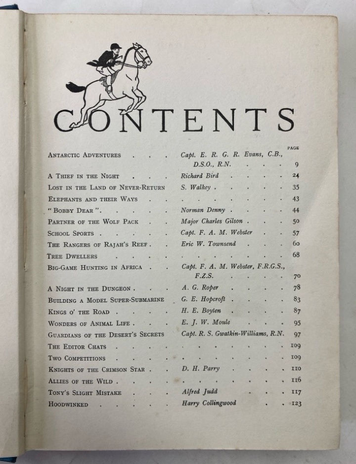 Description: 232p blue decorated cloth with paste-down colour illustration of Cowboy and Indian, name in ink, dated Xmas 1921, 4 colour plates and 22 b&w inaddition to illustrations in text, very good condition