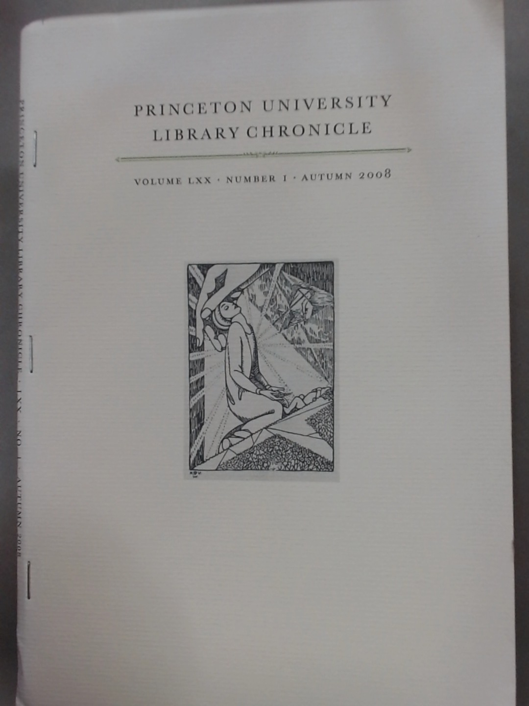 Description: 80p substantial offprint from the Princeton University Library, stapled, many illustrations, author note, together with related "Cover Note"