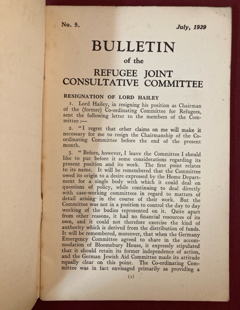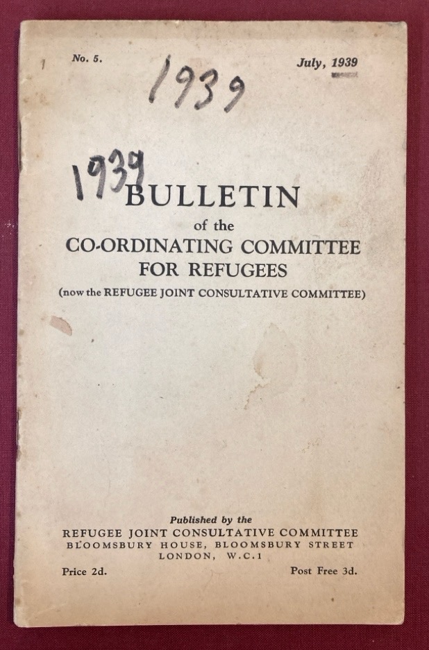 Publisher: London: Refugee Joint Consultative Committee 1939.