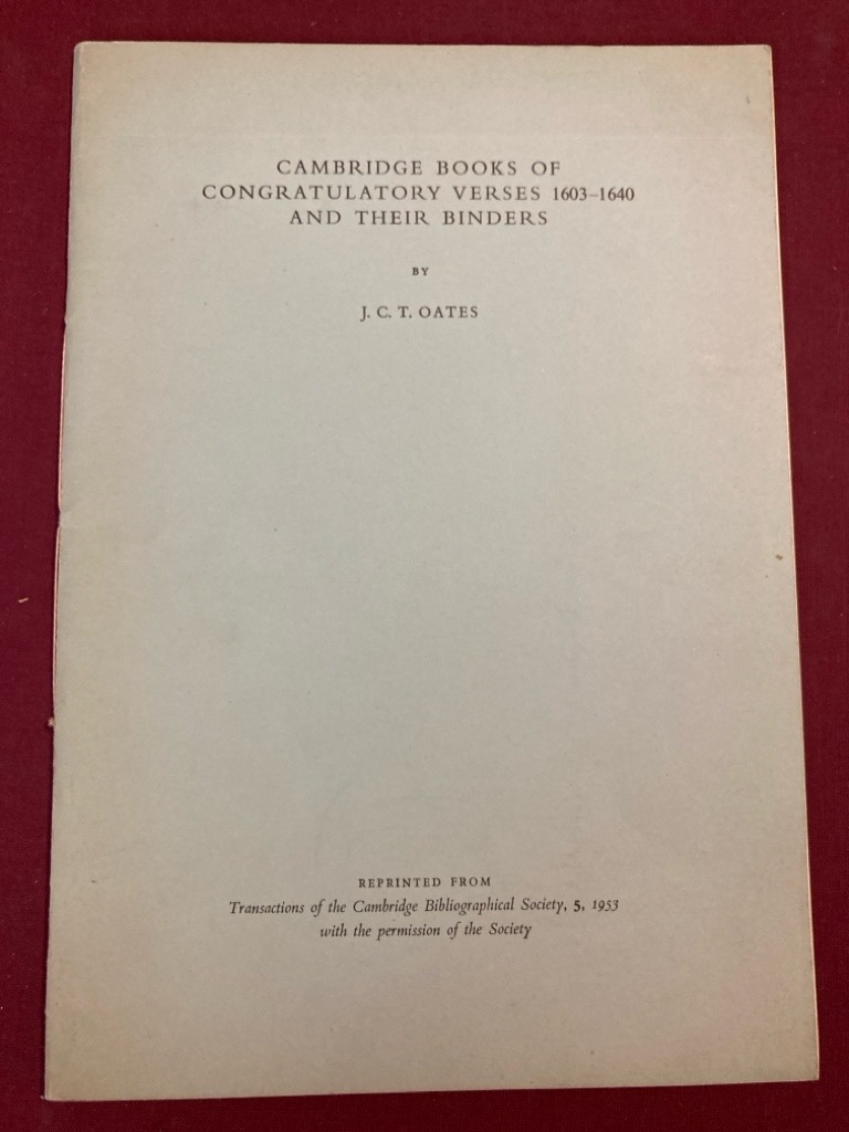 Description: 26p offprint from Transactions of the Cambridge Bibliographical Society, nice clean copy, note of authorial provenance, with illustrations