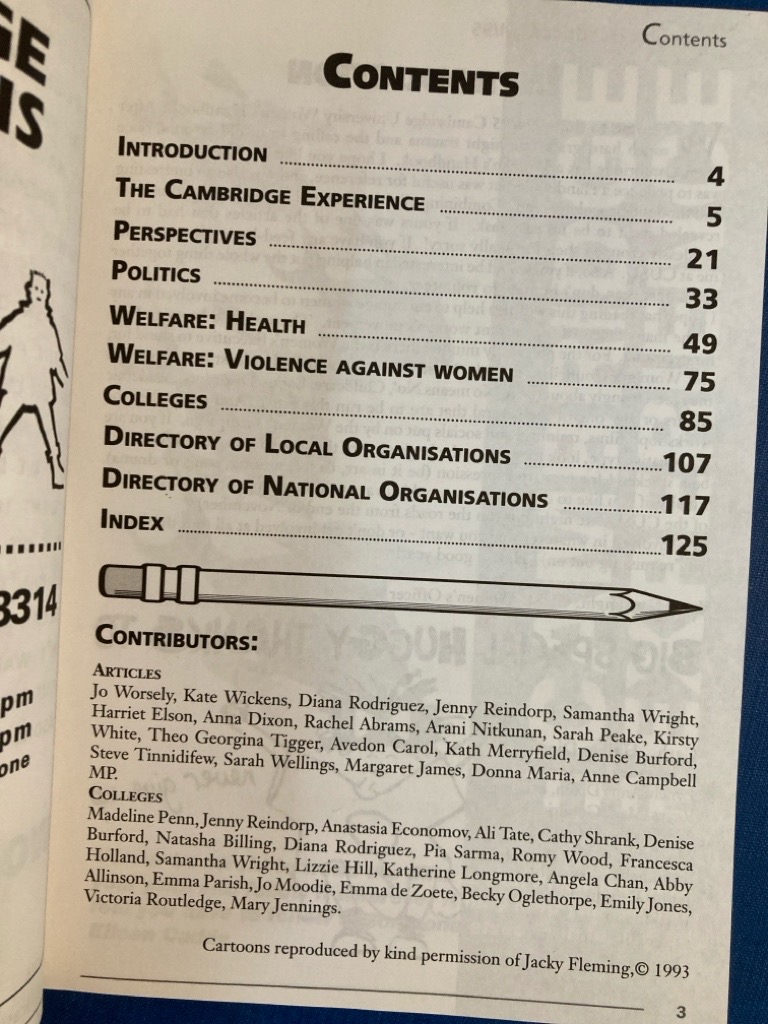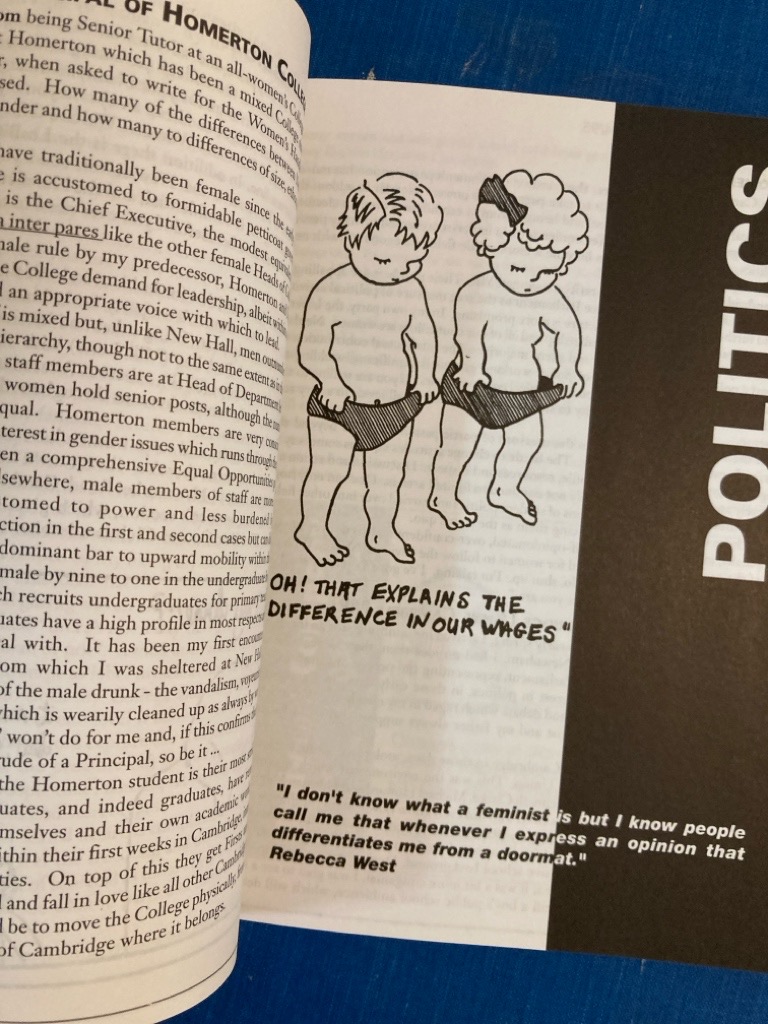 Description: 128p black and white paperback with laminated card cover, as new, pages clean with sections on The Cambridge Experience, Violence against Women, Politics, very good copy, no traces of use, spine not creased