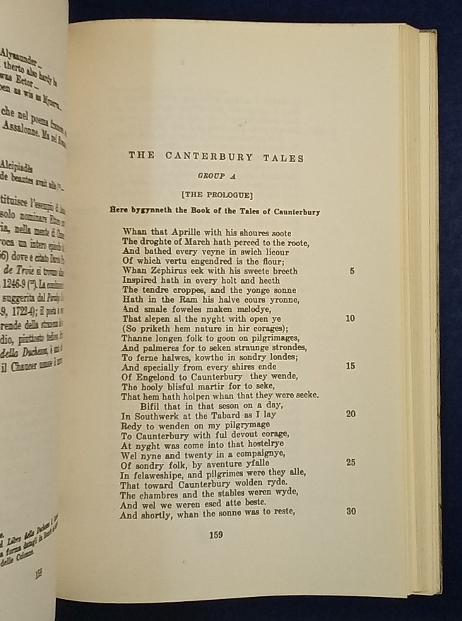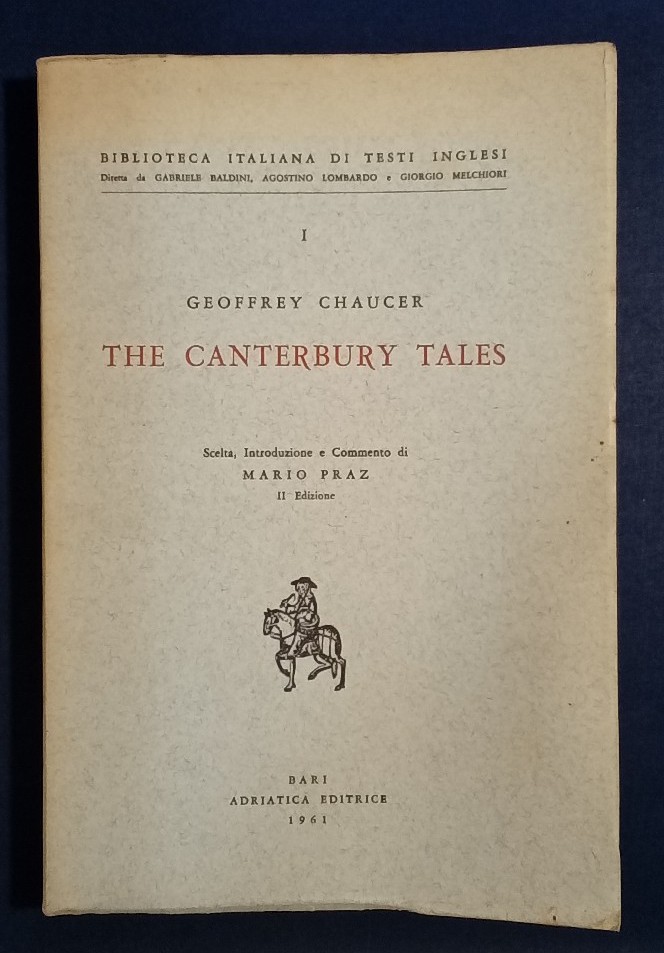 Description: 297p grey paperback, slightly warped, covers sunned with minor wear, binding tight, hinges tight, pages clean, includes The Prologue and The Pardoners Tale (in old English), contents shown in images, introduction/criticism and concluding comment in Italian alongside Italian appendix, very good condition