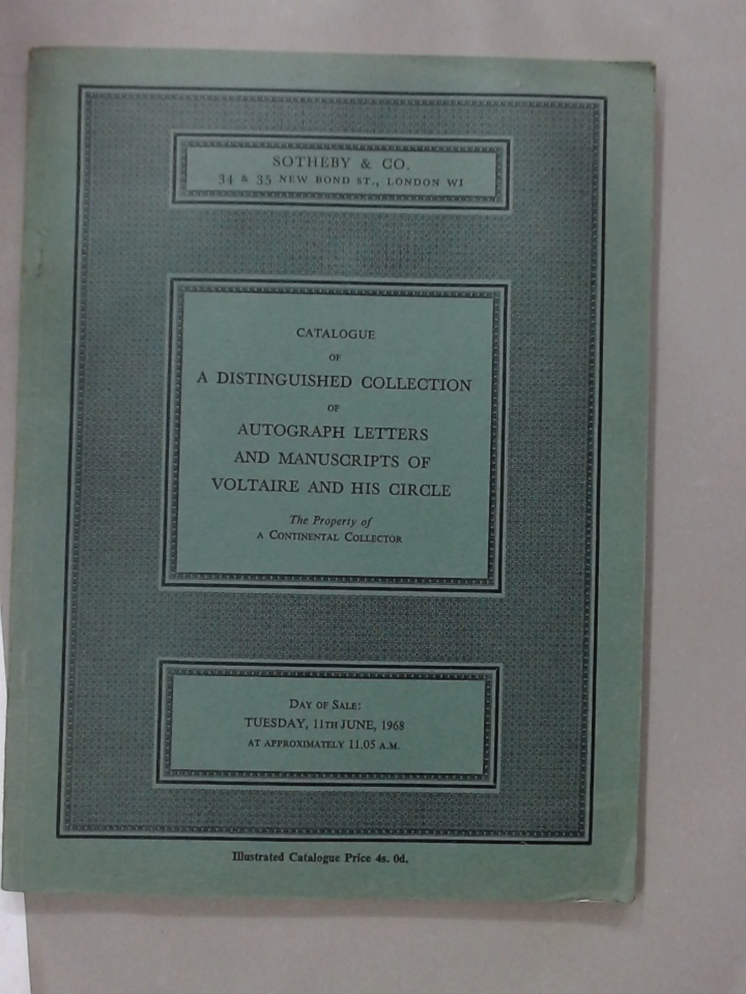 Catalogue of a Distinguished Collection of Autograph Letters and Manuscripts of Voltaire and His Circle. The Property of a Continental Collector. Tuesday, 11 June, 1968.