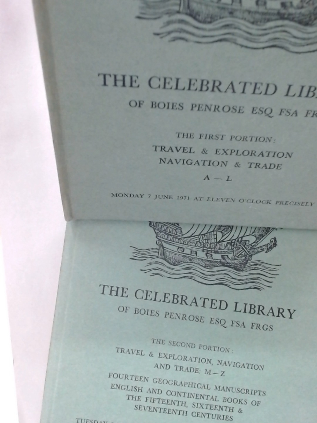 Description: 106p 161p two hardback volumes, green boards with ship design to front, illustrated throughout, colour folding frontispiece, very good set