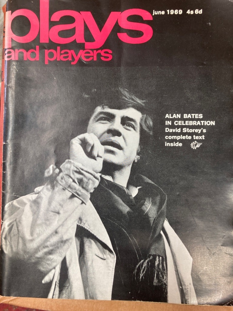 Description: Black stapled journal issue with Alan Bates from 'In Celebration' to front cover, 20p full text of Storey's play, enclosed is the Royal Court Programme for the 1969 production by 'The English Stage Company' with Lindsay Anderson directing, starring Alan Bates