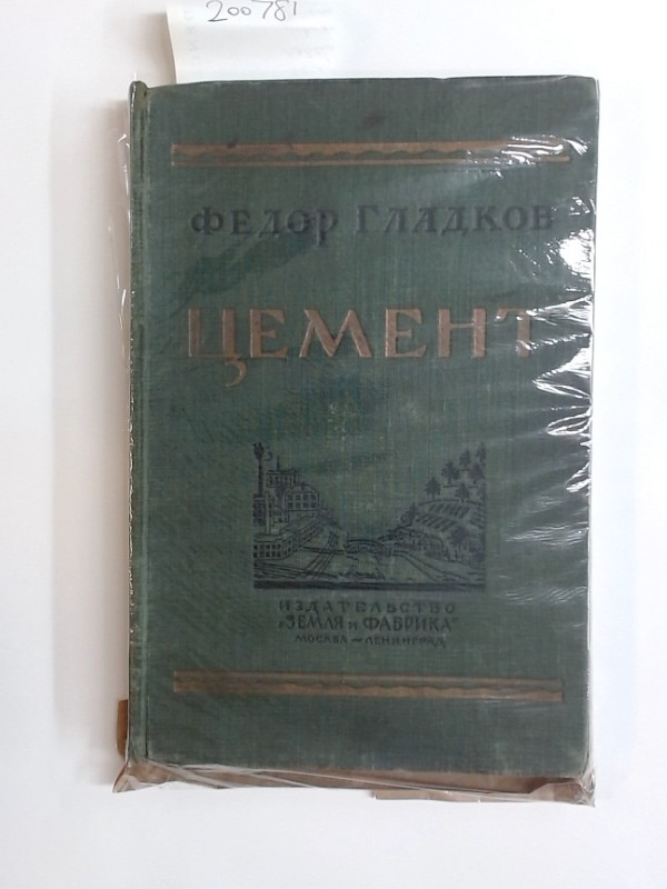 Description: 317p original dark green cloth binding, gilt and black lettering to front, old paper shelfmark to spine, shelfmark number in ink to endpaper, spine worn and tearing along edge, corners a little rubbed, floral endpaper, text clean and still square, Cement set a literary standard for socialist realist writing during the 1930, here in a very early edition which would benefit from some "spinal" support