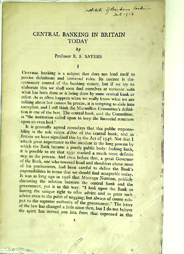 Description: 14p cream stapled pamphlet, Institute of Bankers 1953 in ink to front page, pages unmarked, very good condition