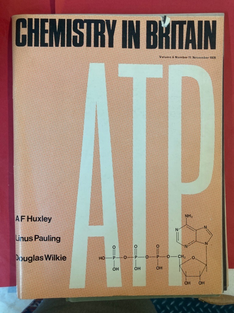 Description: this is a single issue of Chemistry in Britain (a magazine) discussing the role of thermodynamics in the cellular energy domain, provoked by a paper by Barbara Banks (not included), with responses by Huxley, Pauling, Wilkie. The complete issue, A4 format, includes period advertisement, from the library of Andrew Huxley