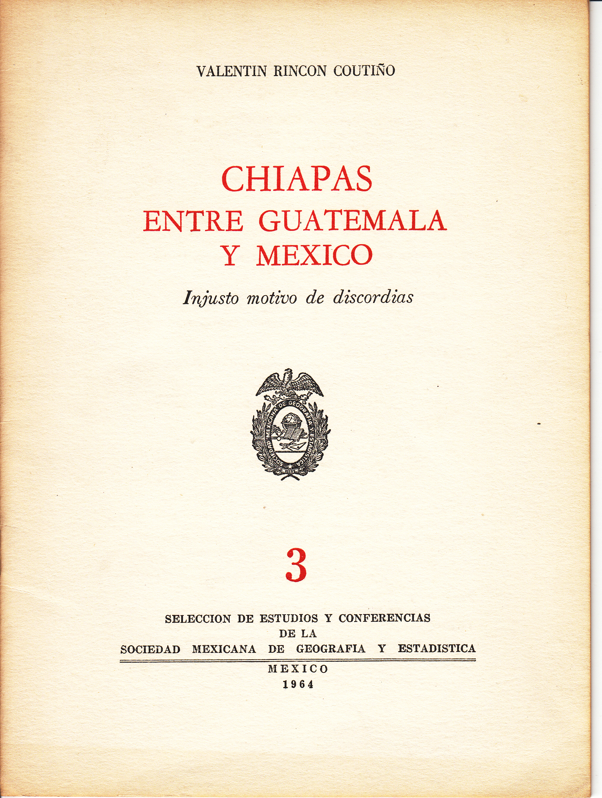 Publisher: Mexico: Sociedad Mexicana de Geografia y Estadistica 1964.