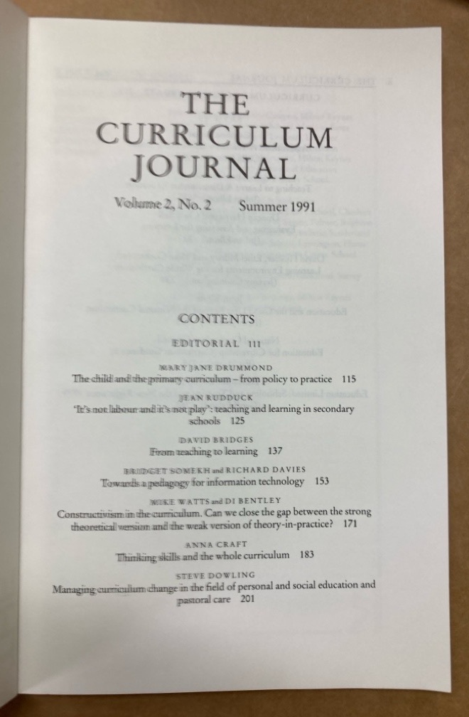 Publisher: London: Routledge 1991. (The Curriculum Journal.)