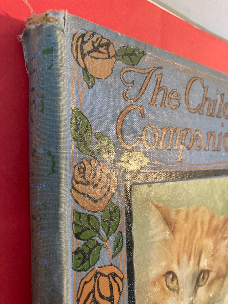 Description: 188p blue cloth, printed colour decoration of roses, colour vignette of cat, many illustrations in text, period advertisements, binding a little soft but holding, original