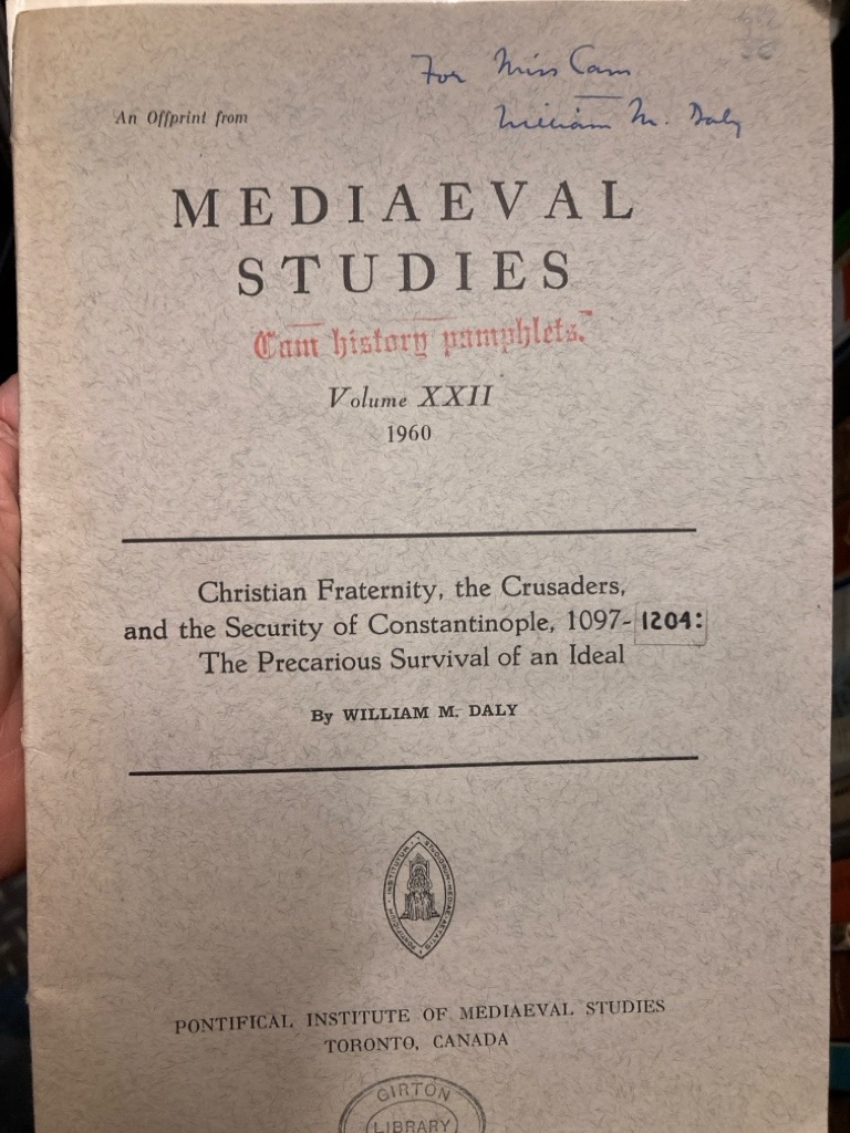 Description: 50p offprint, grey card cover with author note, library stamp, very good