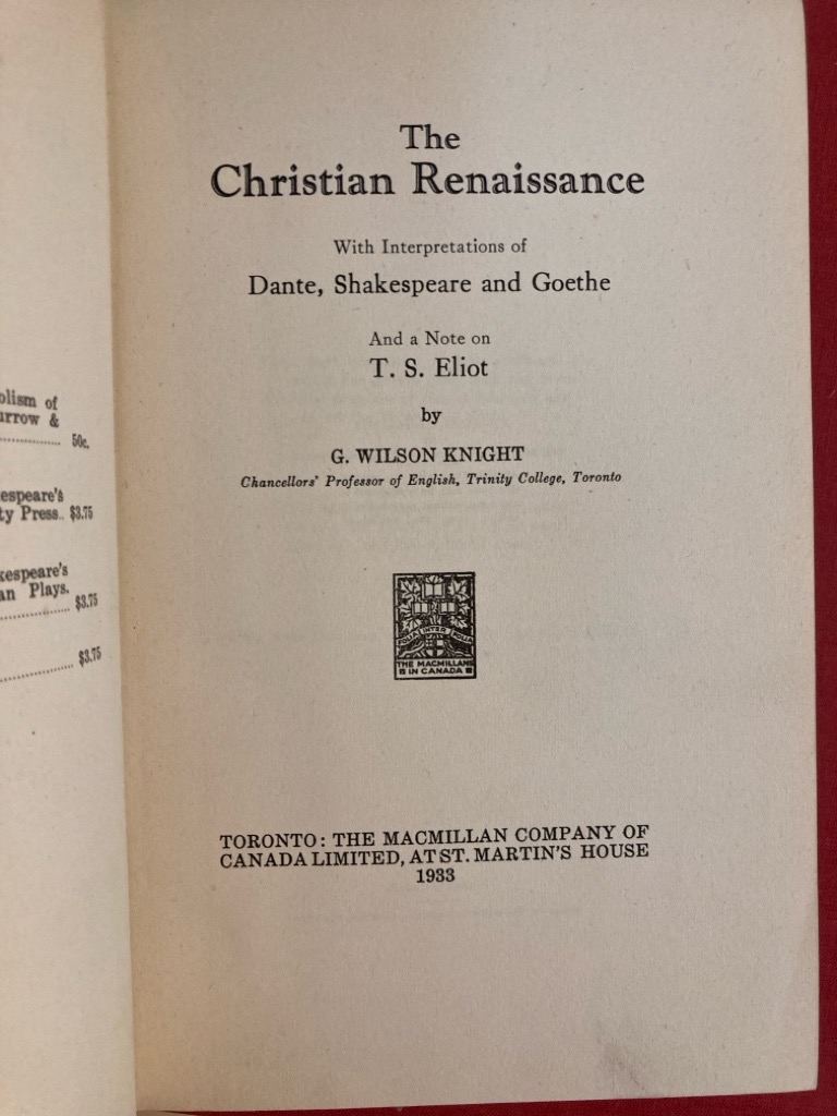 Publisher: Toronto: Macmillan 1933.