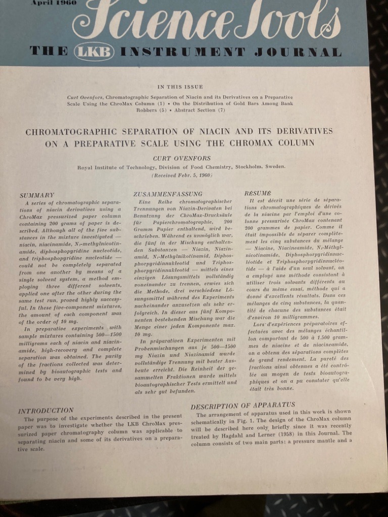 Publisher: Stockholm: LKB Produkter 1960. (Science Tools. The LKB Instruments Journal)