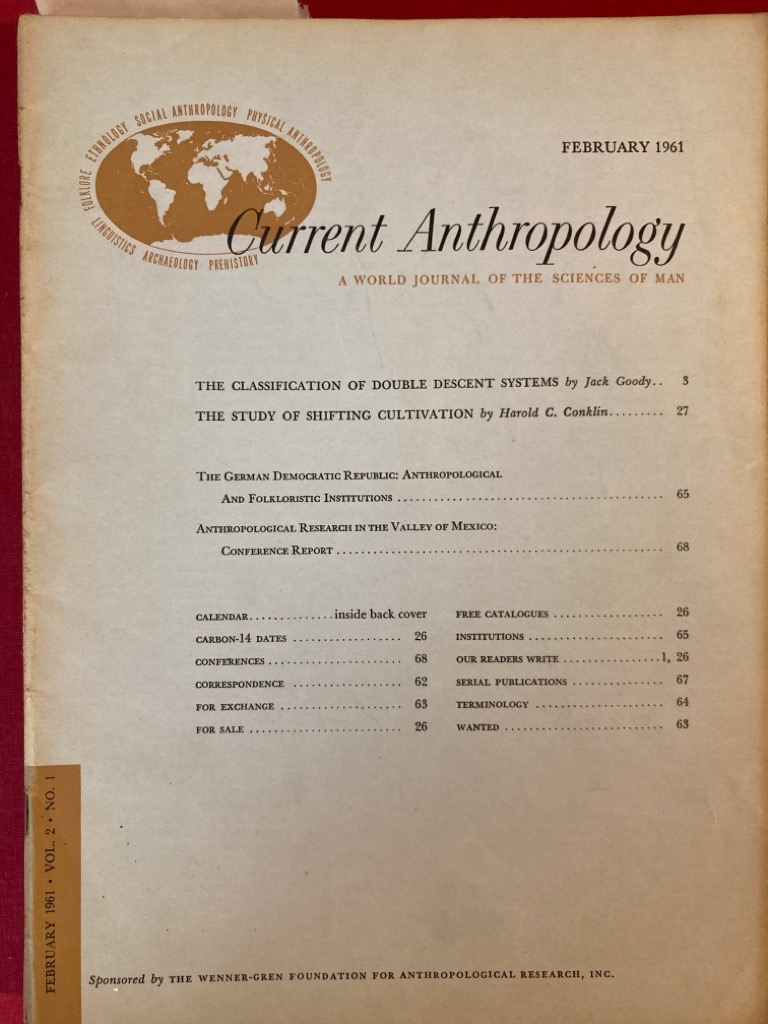 Description: 24p essay in Current Anthropology, February 1961, for sale is the entire issue, well preserved, first edition, original