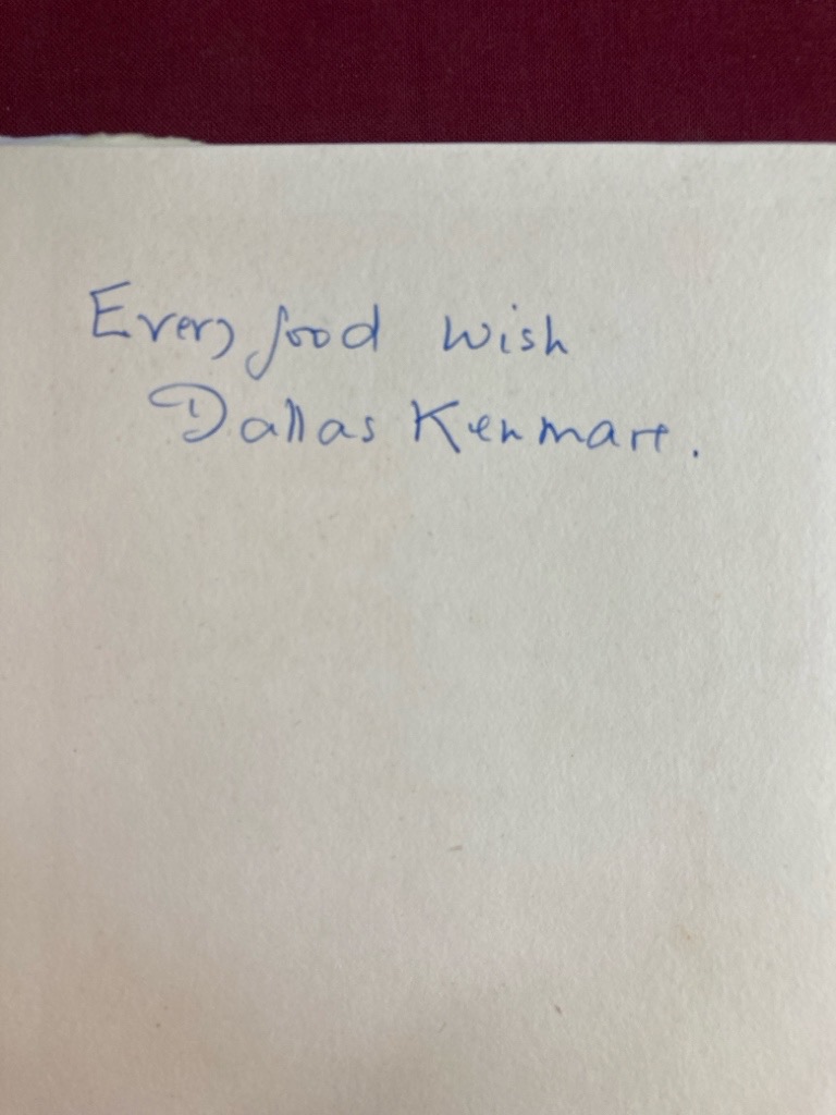 Description: 190p blue cloth with glassine wrapper, signed by the Author "every good wish", small stain to upper spine, interior fine