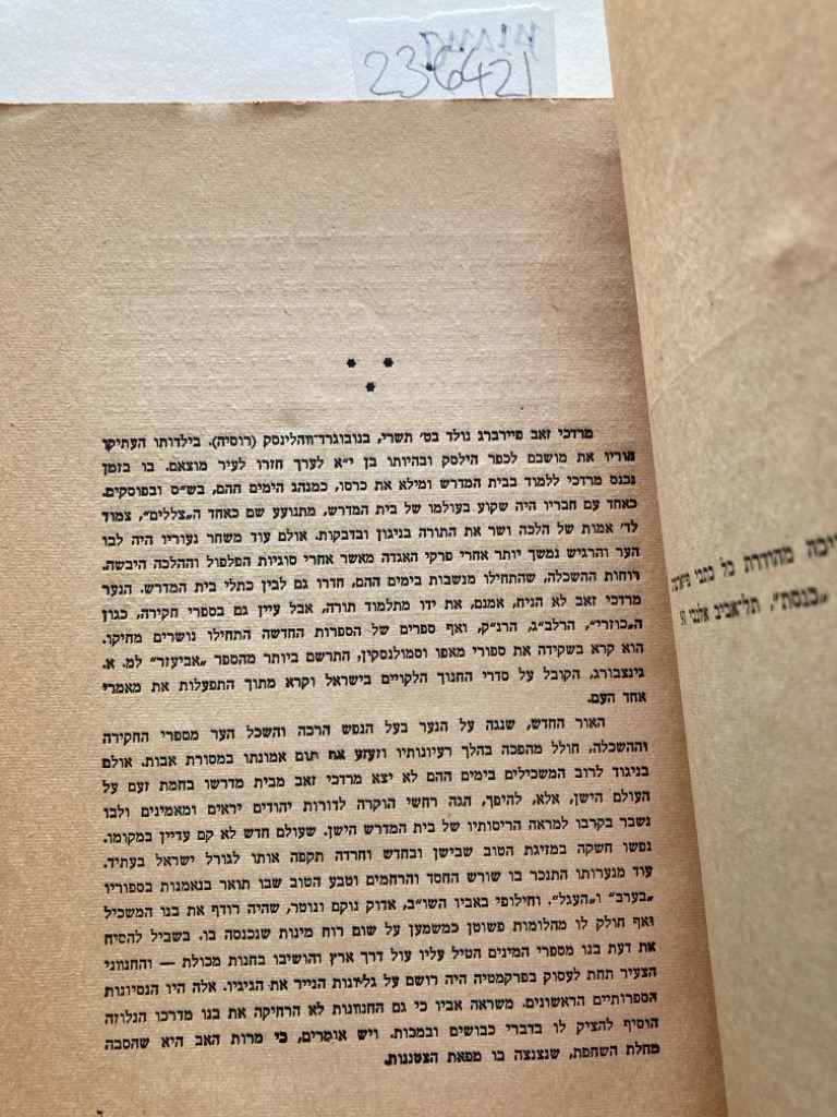 Publisher: Tel Aviv: Knesset Publishing 1950. (People's Knesset Library.)