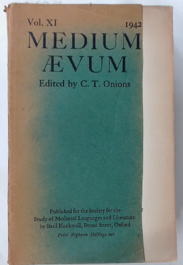 Description: this is a 45 page essay published in Medium Aevum, for sale is the entire issue of the journal with many additional essays, this copy suffers some shortness in the cover which is also detaching, it also shows a few pencil notes to the text