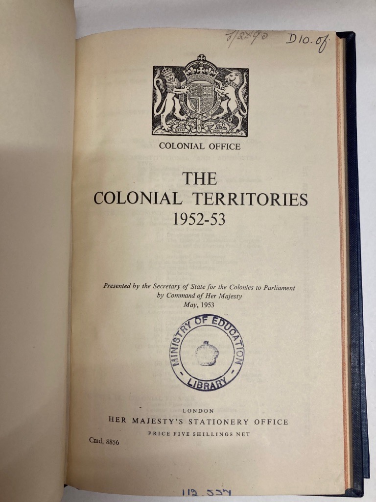 Description: xi 157p blue cloth, gilt lettering to spine, attractive page edges, small "Ministry of Education" stamp and neat label, contains various lists and tables, very well preserved