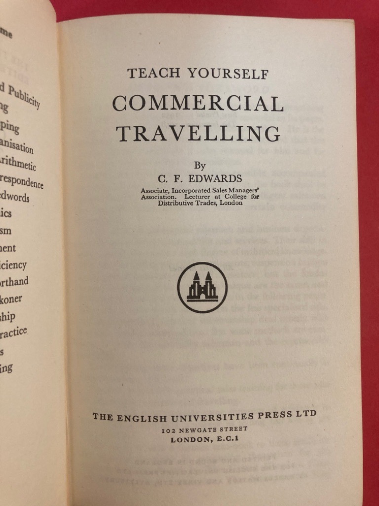Description: vii 184p hardback, dustjacket, guide to being a travelling salesman, index, a very bright and fresh copy, much to be recommended above all others