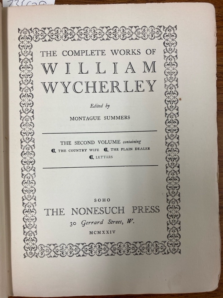 Author: Wycherley, William, Summers, Montague