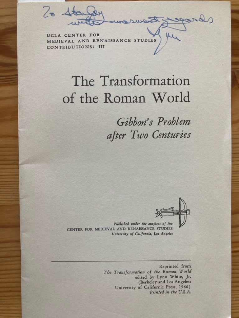 Description: 20p offprint, author inscription to cover, from "The Transformation of the Roman World," very good copy