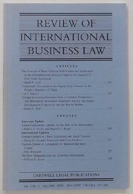 Description: this is a 20p essay in Review of International Business Law, for sale is the entire issue of the journal very good, clean copy