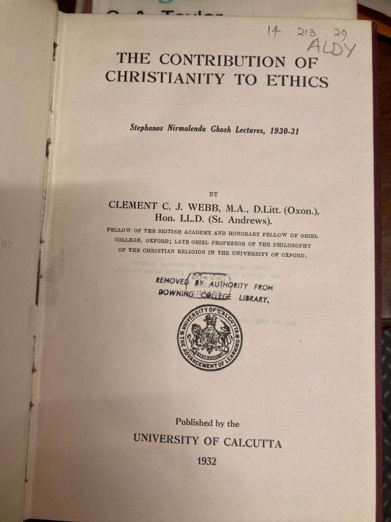 Publisher: University of Calcutta 1932. (Stephanos Nirmalendu Ghosh Lectures, 1930-31)