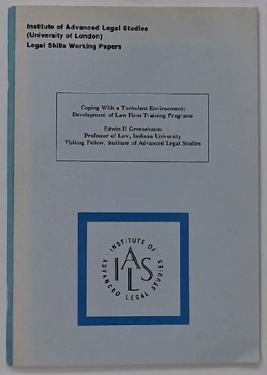 Publisher: London: Charles Clore House 1991. (Legal Skills Working Papers)
