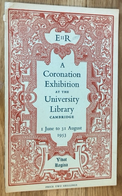 Description: 36p stapled booklet, card covers with ornate red borders, clean and bright pages listing exhibits, a fresh copy, a well-kept copy of the original exhibition pamphlet